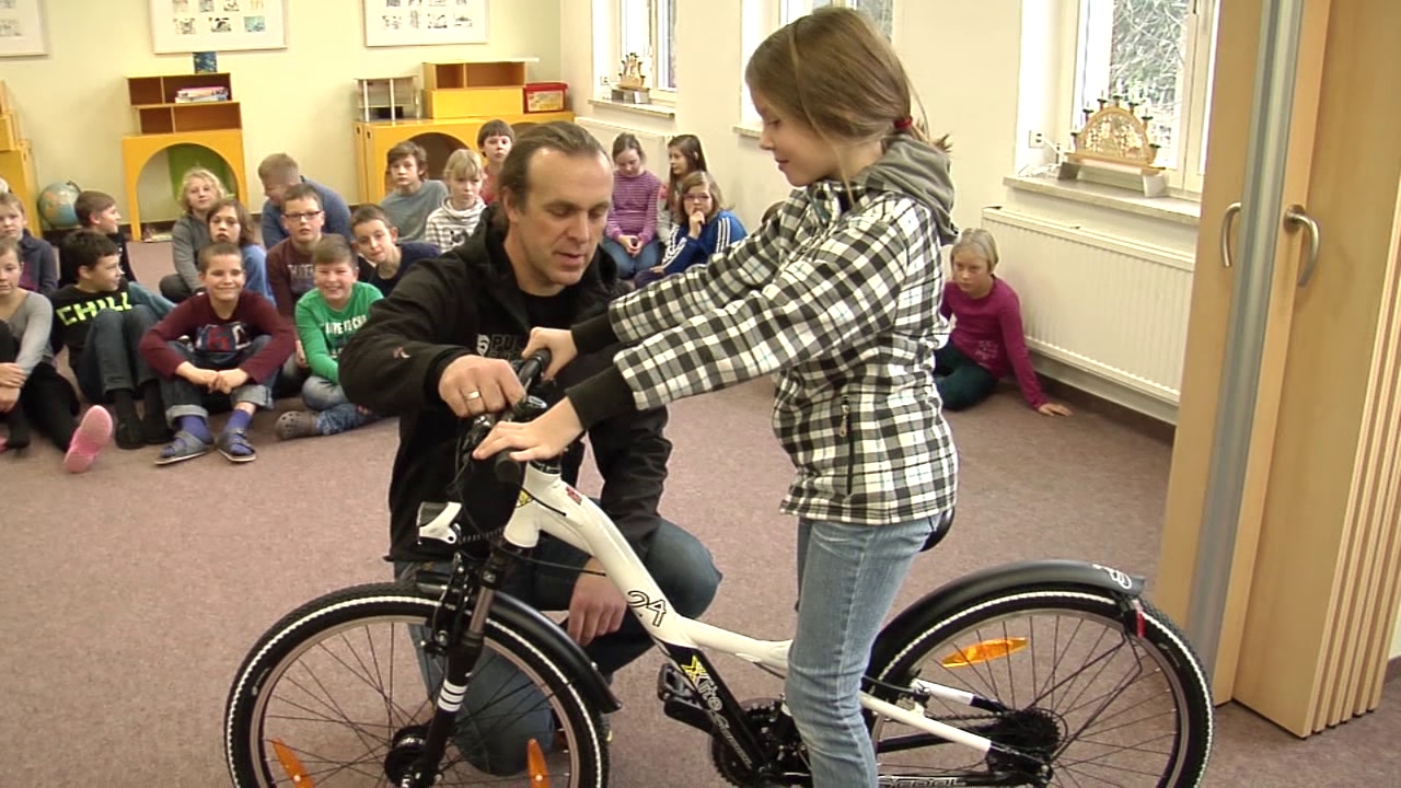 - Fahrrad an Gewinnerin übergeben